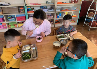 园所管理层陪幼儿进餐是幼儿园食品安全管理的一部分,同时也是师幼互动的一个过程。从提升膳食管理水平的角度,陪餐老师可以借助陪餐观察幼儿的进餐情况,包括菜品的大小,软硬是否适中,保育教师分餐是否合理,班级回餐情况等,同时可以向幼儿询问,了解幼儿对于餐食的喜好,将这些信息汇总筛选,用于指导幼儿膳食管理工作。