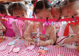 中秋是一个想象优美的神话,一千年一万年脉脉相传!在“中秋佳节”来临之际,为了让孩子们感受、了解我国传统节日的喜庆气氛,开展了“穿一袭汉服穿越千年,金色摇篮叠彩园中秋游园会”游园活动。 游戏是孩子们最喜爱的活动,老师们为孩子准备了猜灯谜、挂花灯、投壶、套圈、击鼓、茶艺、毛笔字、香包首饰……孩子们玩中乐、乐中学、玩中有得、玩中有创。 精彩纷呈、富有启迪的中秋节游园活动,激发了孩子们对我国传统文化的兴趣,体验到幼儿园大家庭团圆分享的快乐!